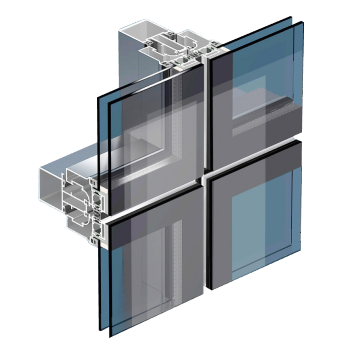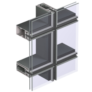 Полуструктурное остекление. Этот метод сочетает стойкость стоечно-ригельной системы с визуальной лёгкостью структурного остекления. Стекло или стеклопакеты крепятся к профилю при помощи узких прижимных штапиков, минимально закрывающих его поверхность. В отличие от полностью структурного остекления, эта методика допускает использование крупных стеклопакетов и включает открывающиеся элементы.